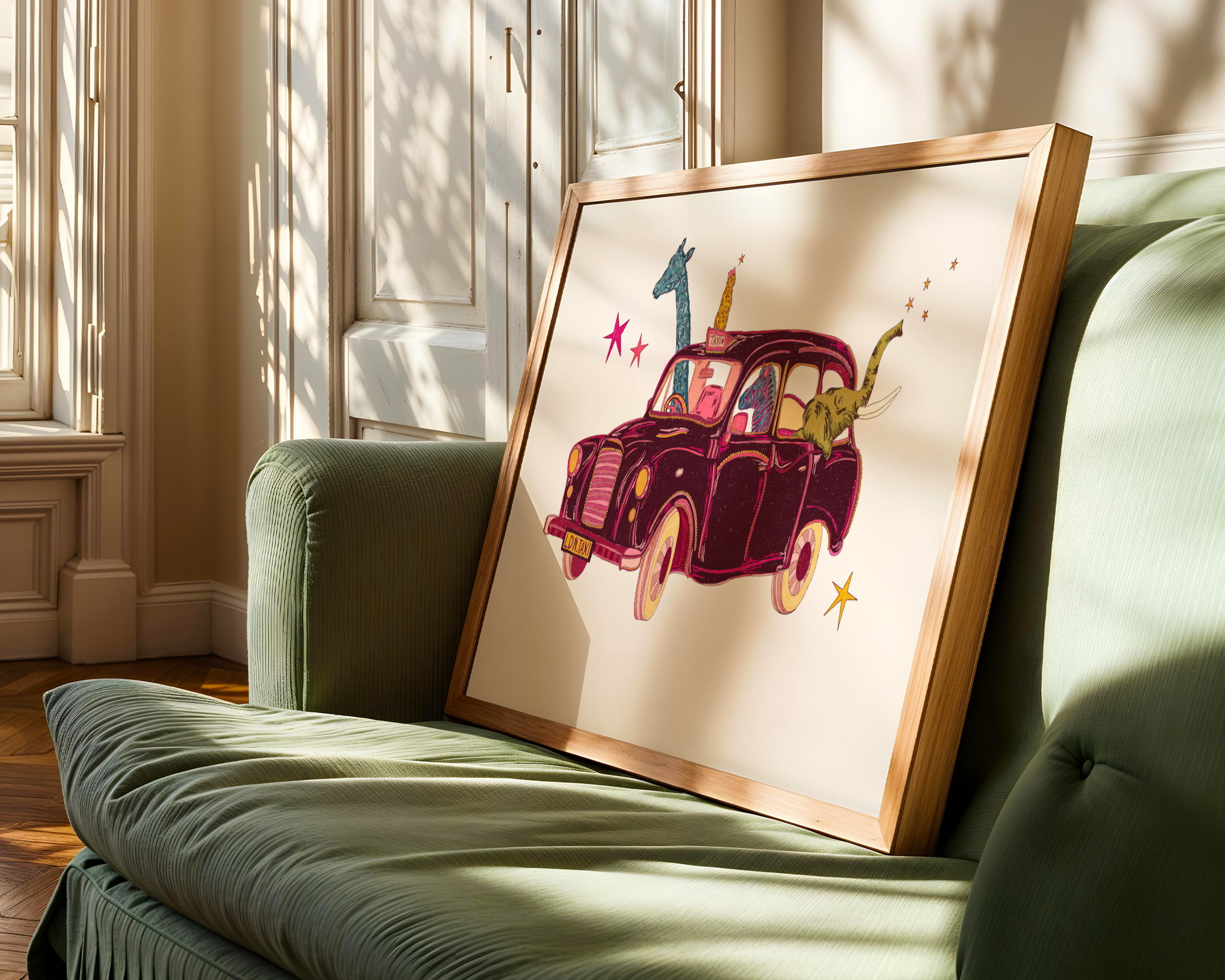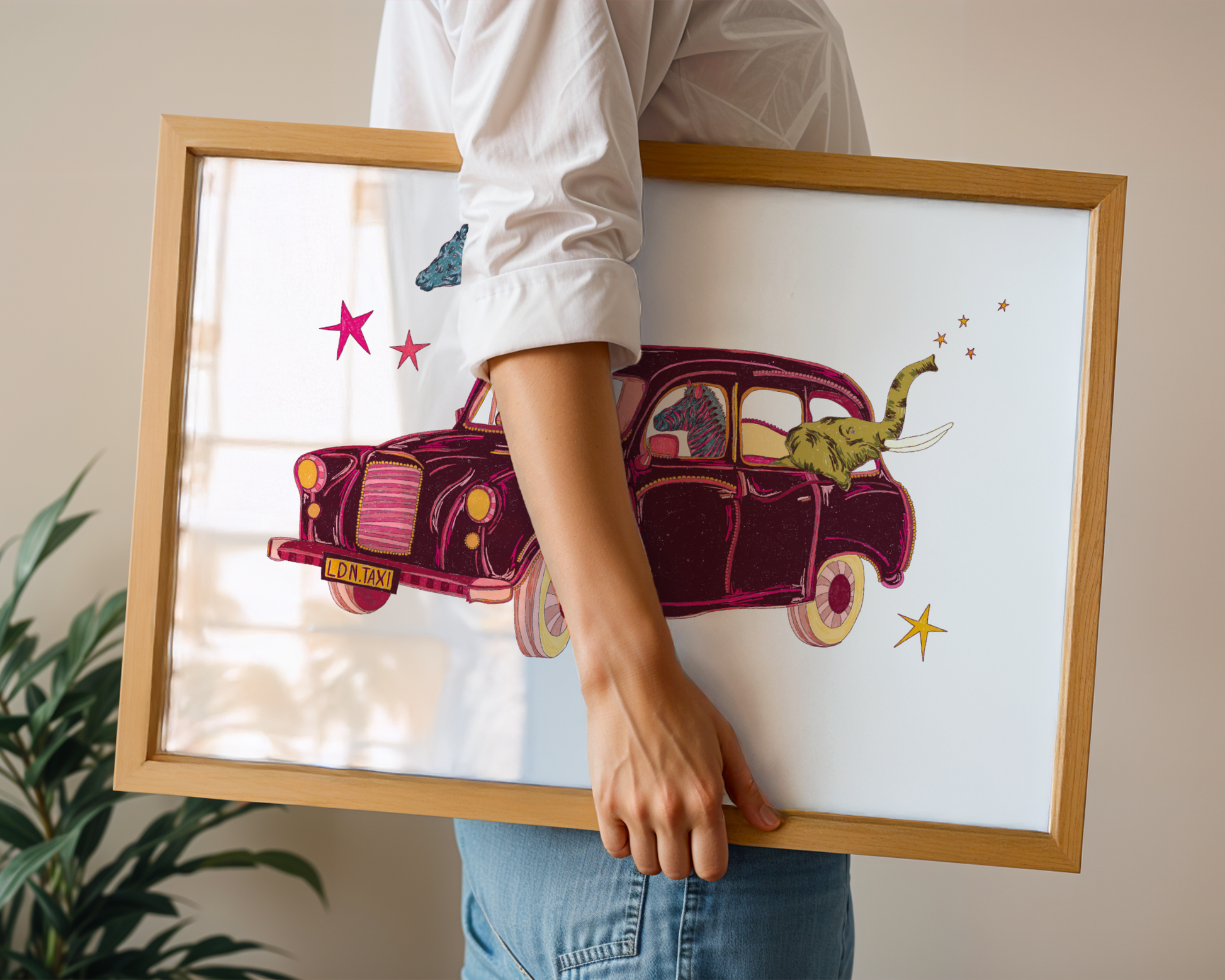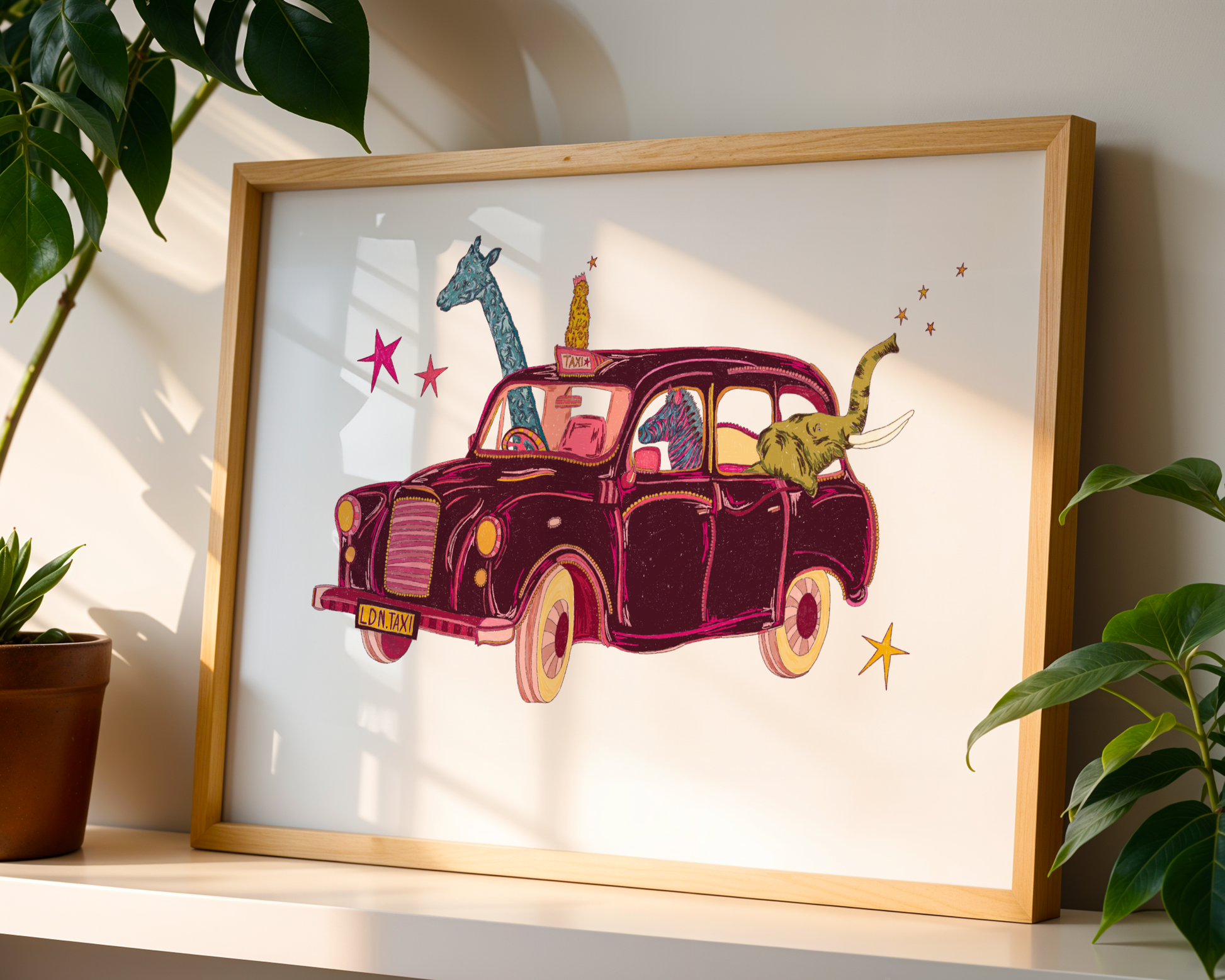 A classic London taxi, but make it chaotic in the cutest way. Packed full of colourful little animals, this print is bursting with personality, charm, and feel-good energy. Playful, bright, and full of fun details, it’s the kind of artwork that makes you stop, smile, and look twice. Perfect for colour lovers, city dreamers, and anyone who likes their London icons!