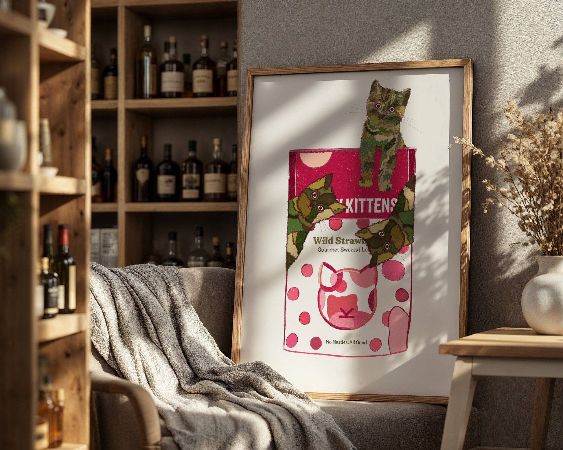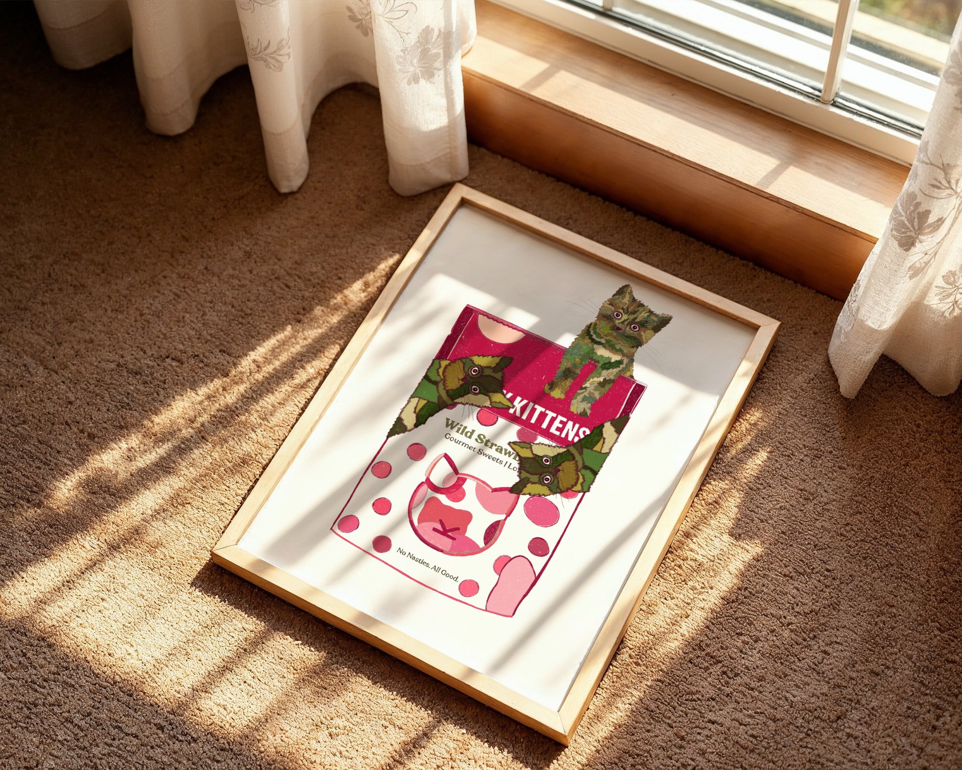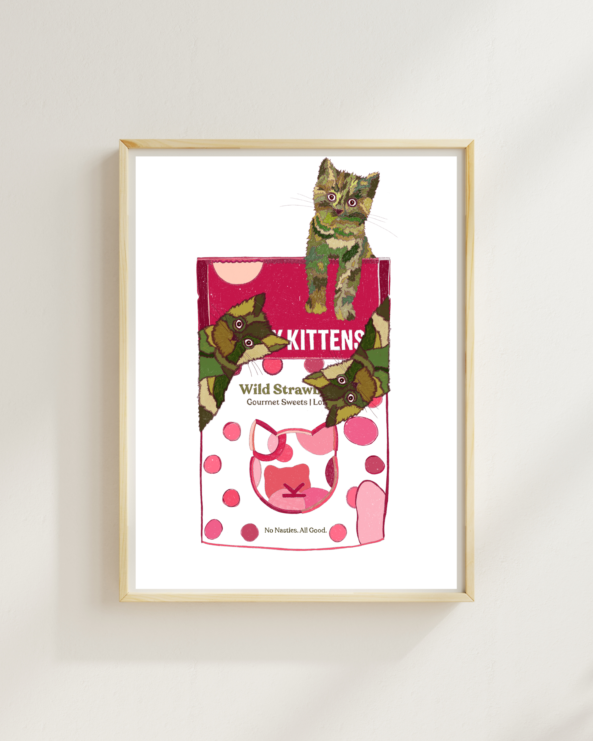 A couple of cheeky green cats chilling on a Candy Kittens bag — sweet, silly, and totally irresistible. It’s bold colours meets playful chaos, like walking into a pick-and-mix shop after one too many iced lattes. Cute, quirky, and guaranteed to make you smile every time you look at it. Perfect for sweet-tooth girlies, colour lovers!