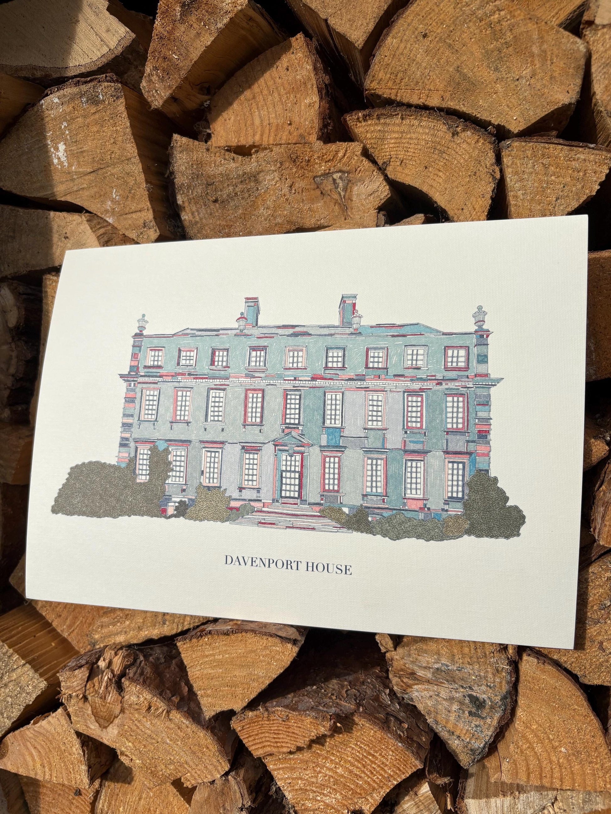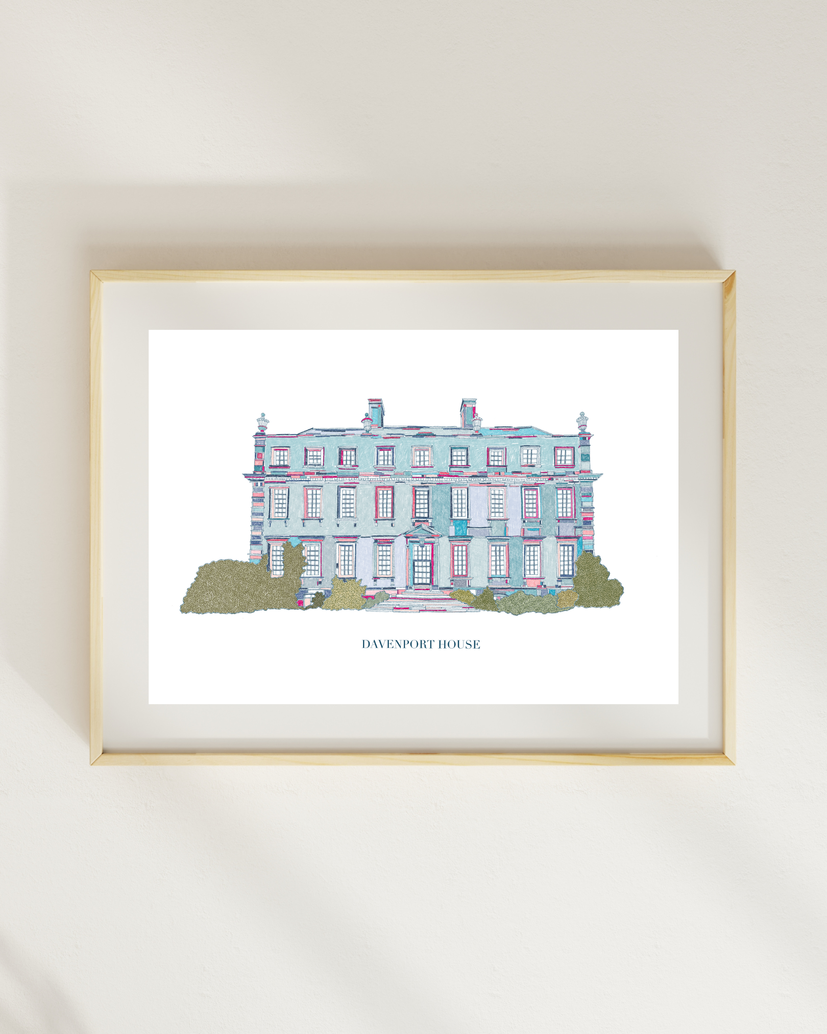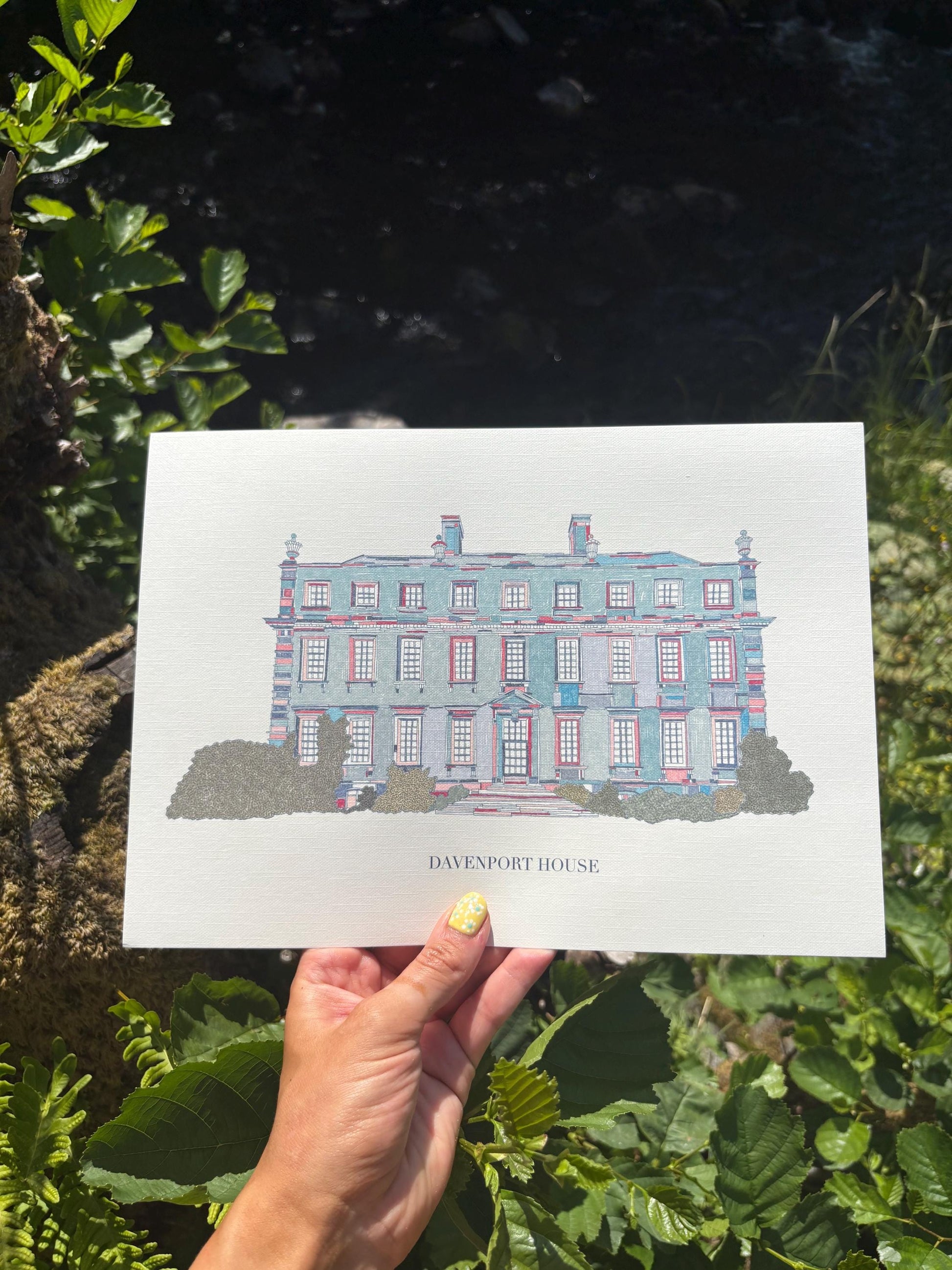 A charming illustration of Davenport House — romantic, playful, and the perfect keepsake for wedding day magic and forever memories!
