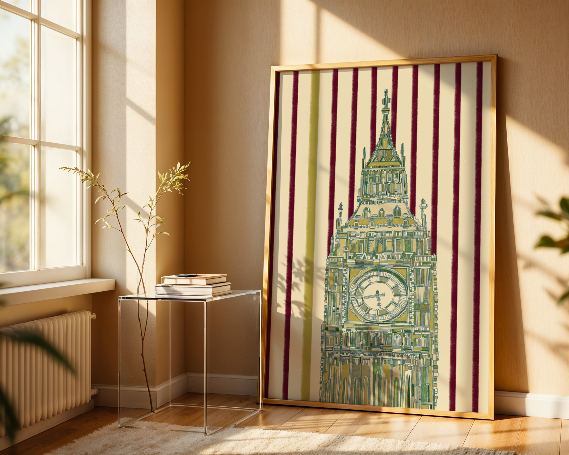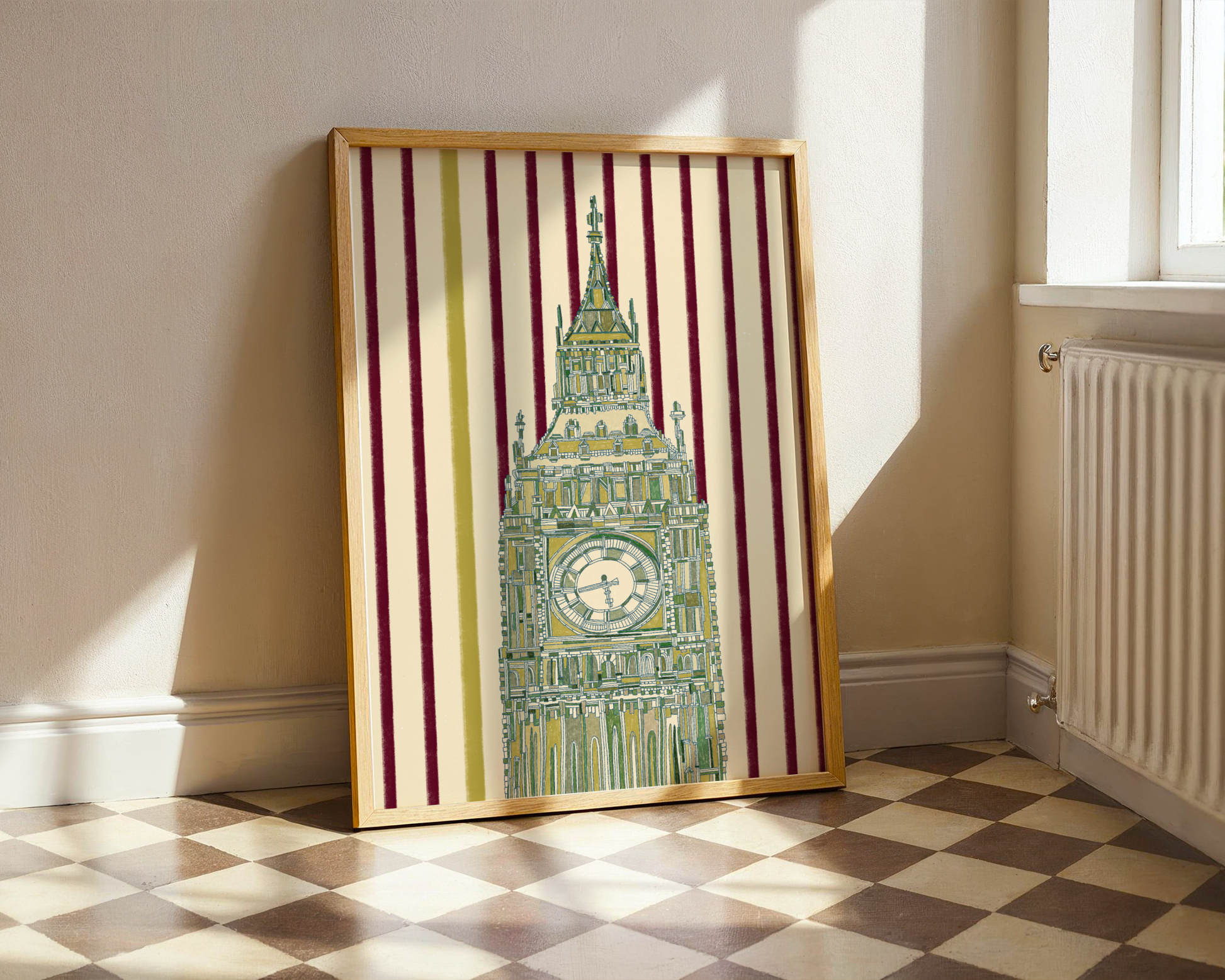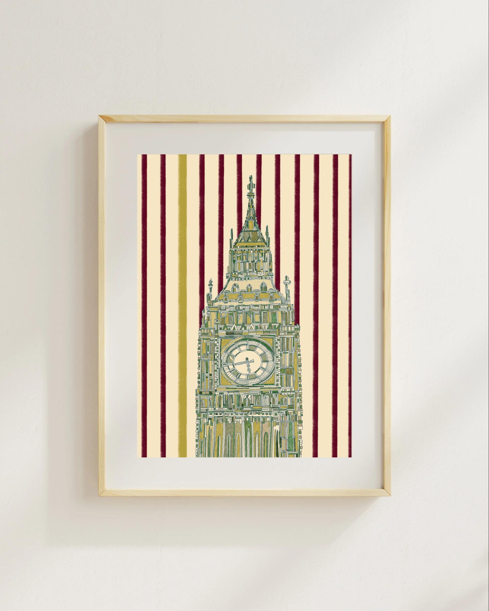 A London classic with a cheeky twist — Big Ben all dressed up in green, standing tall against deep purple stripes. It’s bold, a little bit dreamy, and the kind of print that feels just as fun as a girls’ trip to the city!